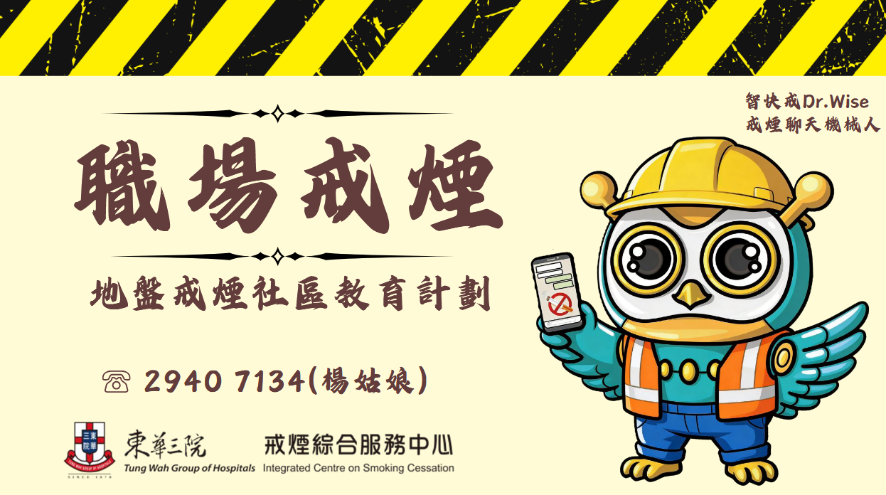 東華三院戒煙綜合服務中心與香港大學護理學院合辦「智快戒Dr. Wise」人工智能聊天機器人,是本港首個以人工智能方式提供戒煙資訊的聊天機械人。查詢人只需掃描二維碼即可與機械人接通。「智快戒Dr. Wise」為查詢人提供戒煙資訊,並即時解答戒煙疑難!
