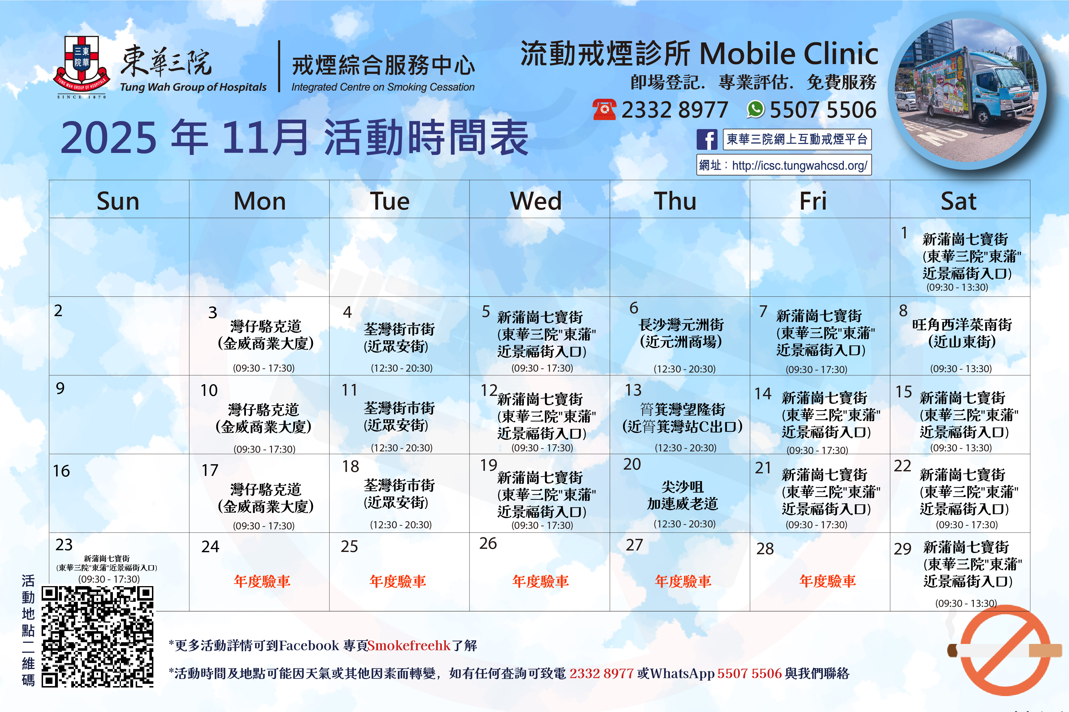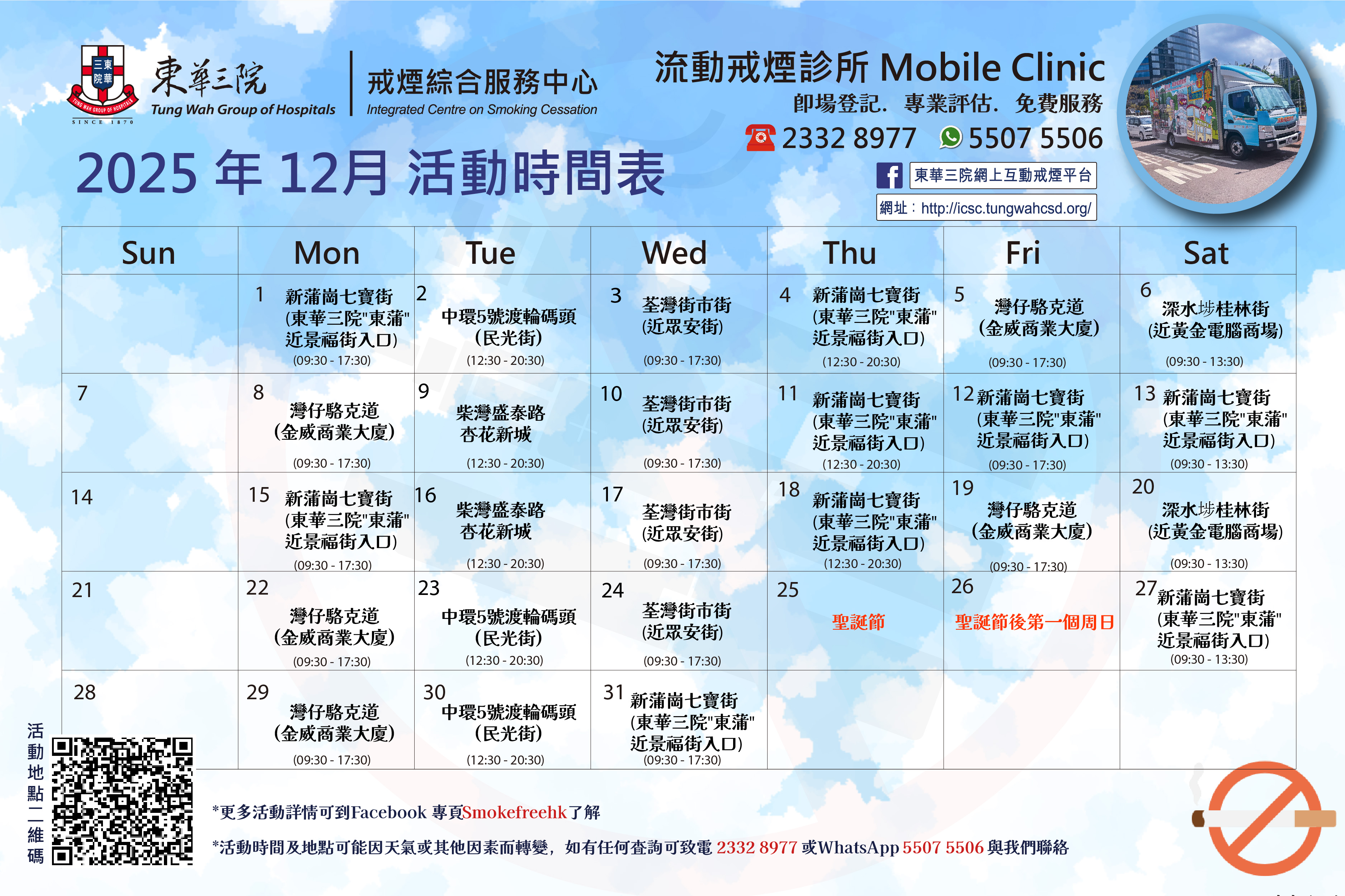 2025年 11月及12月份流動戒煙診所活動時間表!