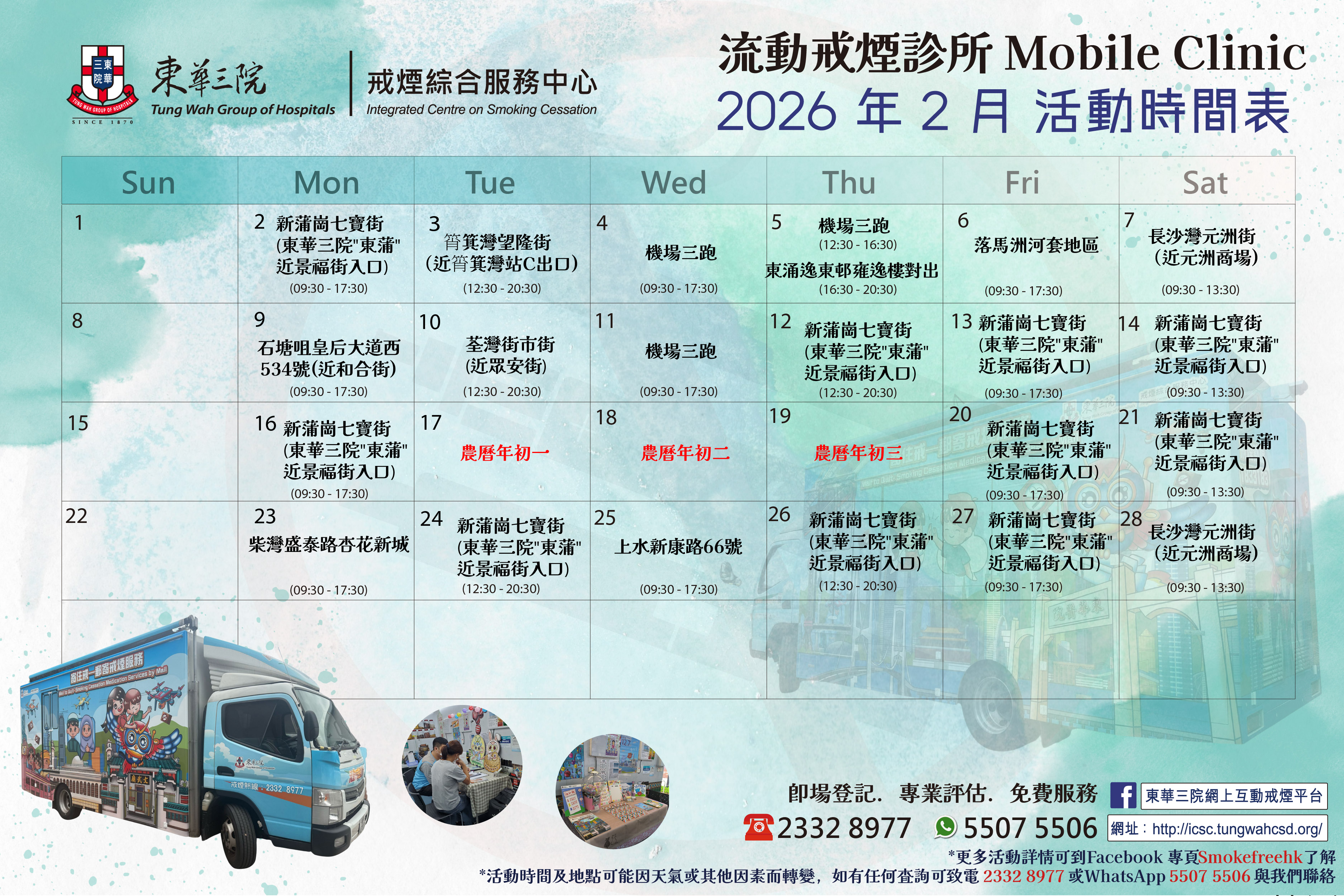 2026年 1月份和2026年 2月份流動戒煙診所活動時間表!