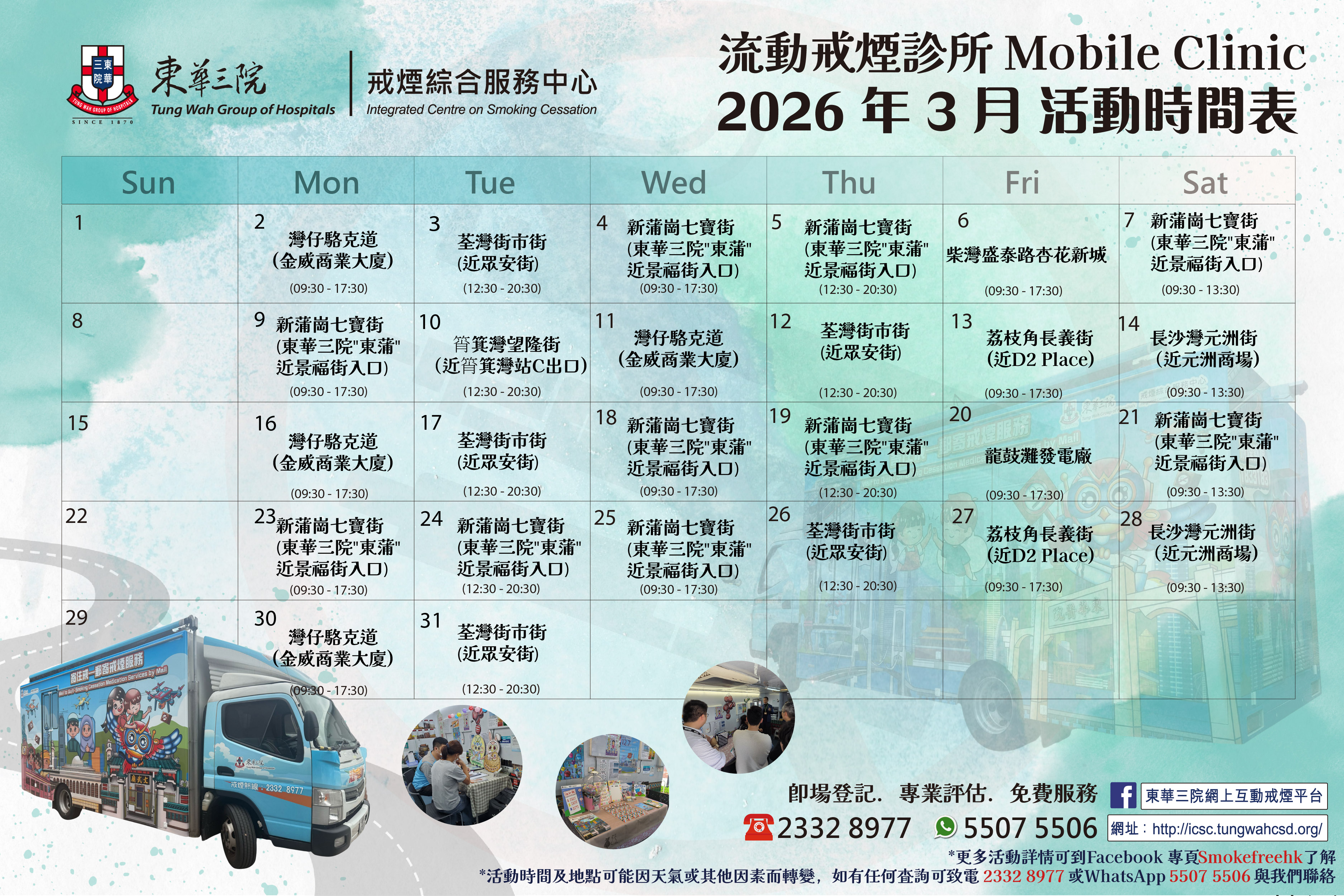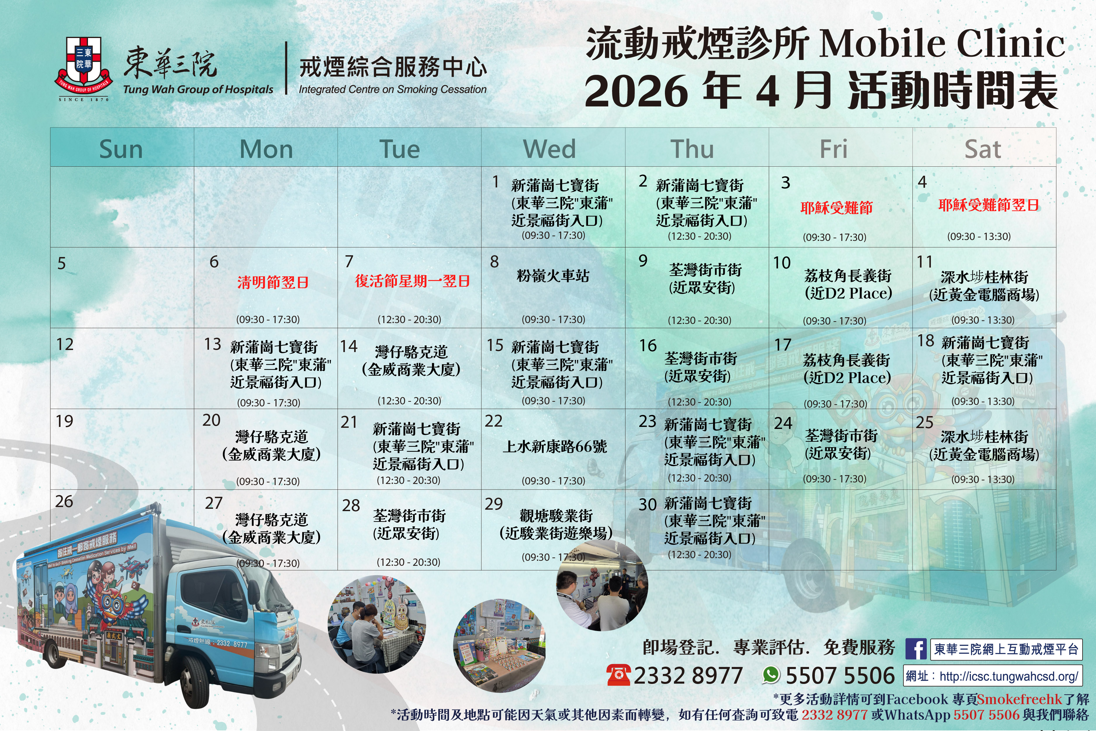 2026年 3月份和 4月份流動戒煙診所活動時間表!